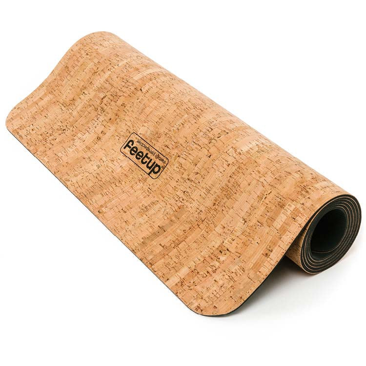 Designed for people of all shapes and movement backgrounds, the FeetUp Mat provides a non-slip cork surface for optimal traction with minimal care. Regular mats become slippery when wet. Cork gets more grippy when exposed to moisture. The thick natural rubber base unrolls flat every time. Enjoy comfort & support with plenty of room to explore!